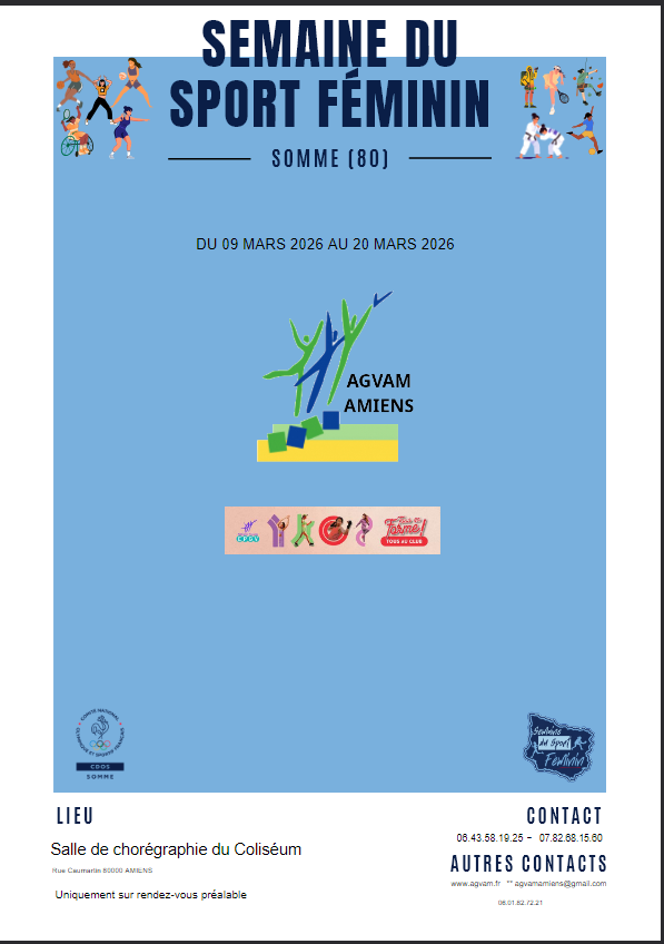Venez participer à la semaine du sport au féminin avec l’Agvam Amiens du 9 au 20 mars 2026